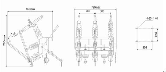 .负荷开关是单杆抱箍式垂直安装用两个抱箍和四个螺栓(用户自备)通过底架固定于电杆上