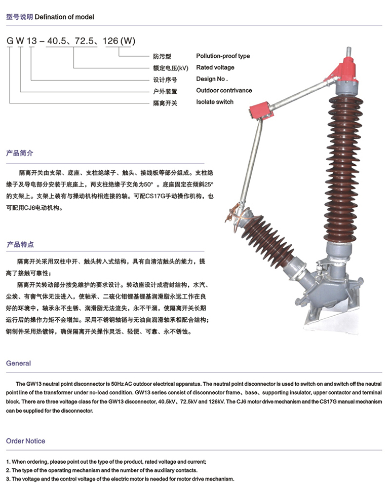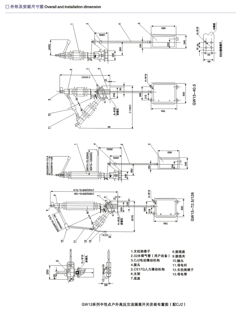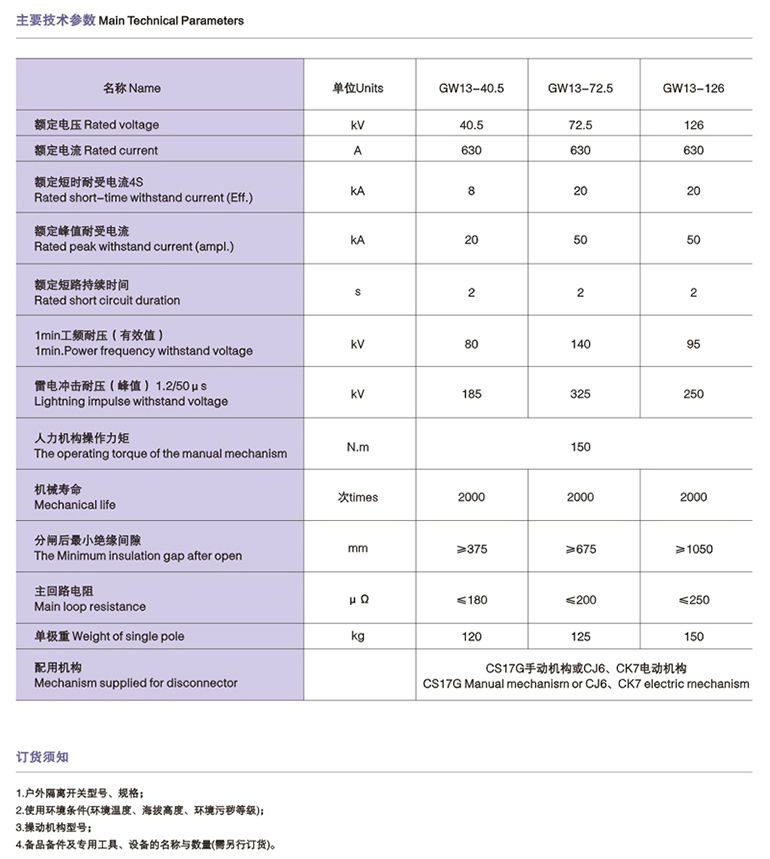 GW5-40.5、72.5、126户外高压交流隔离开关
