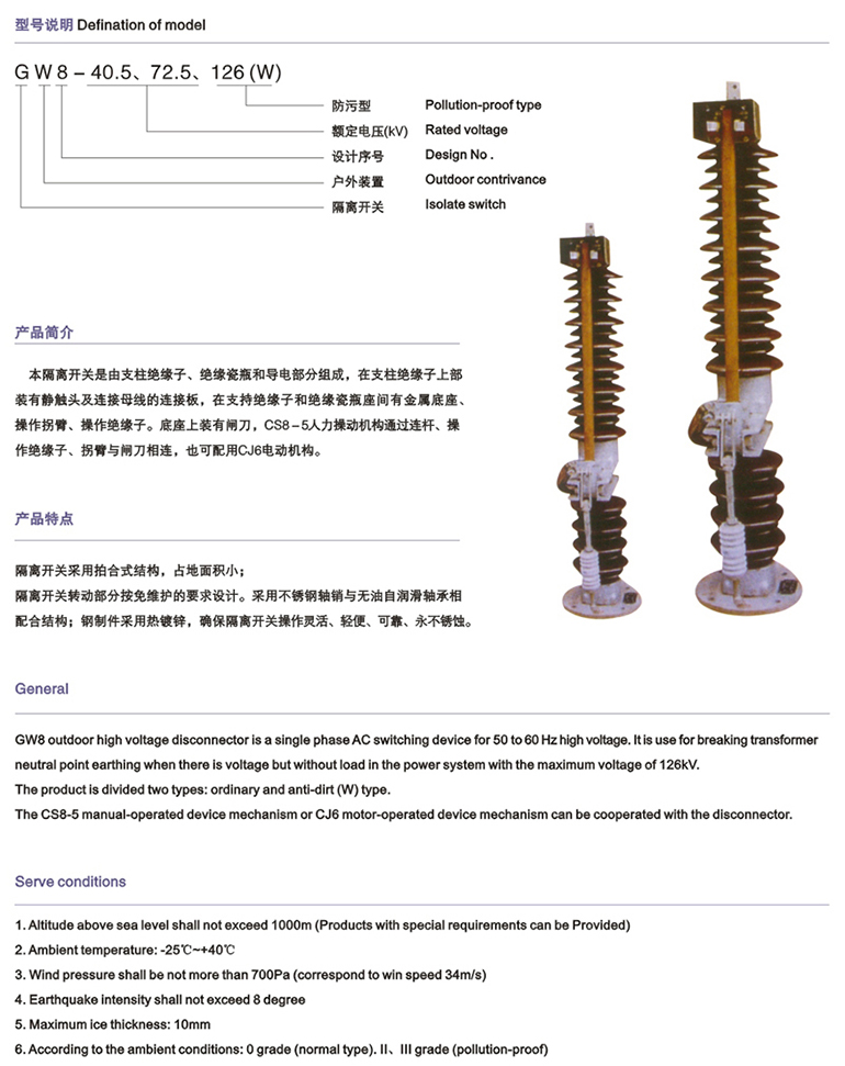 GW5-40.5、72.5、126户外高压交流隔离开关
